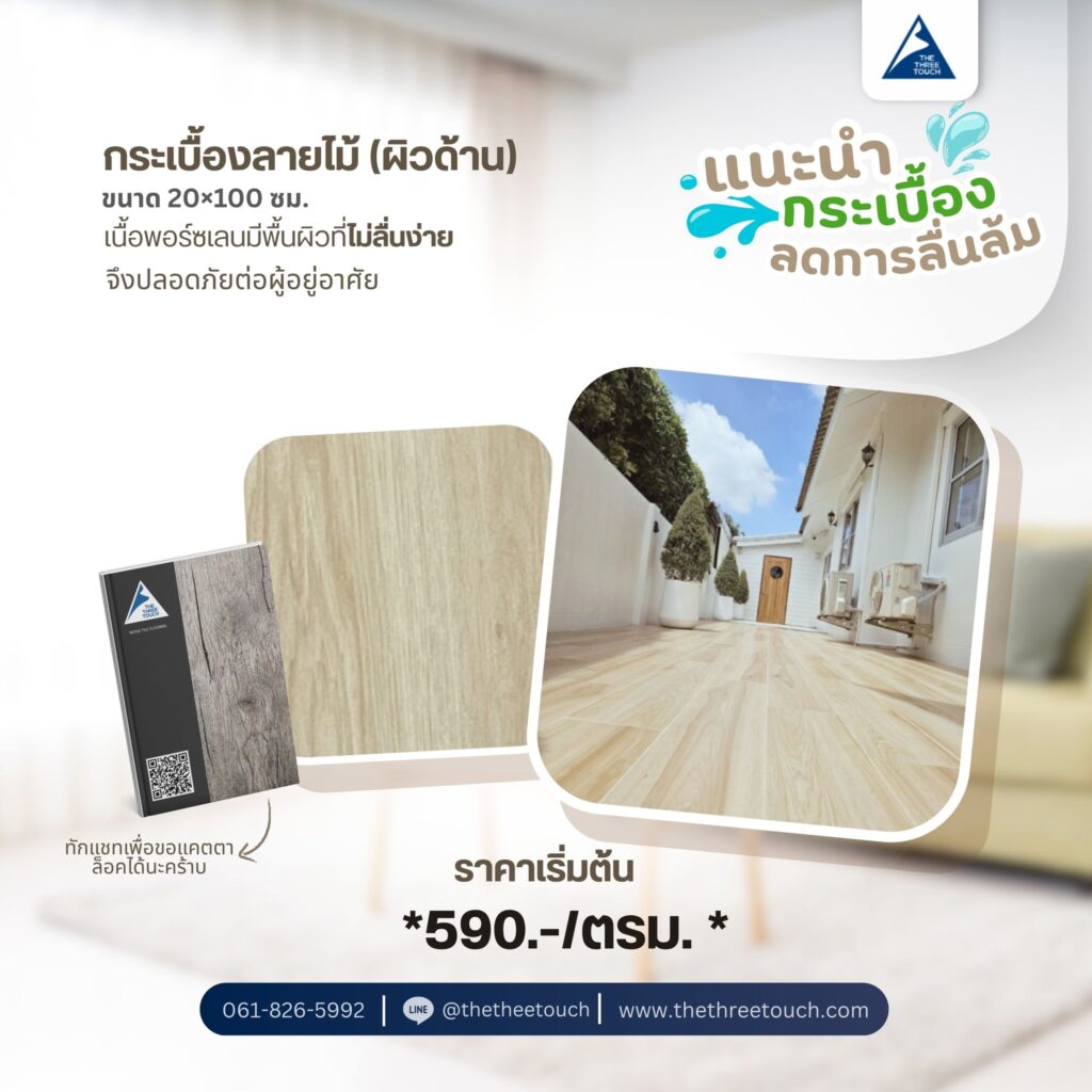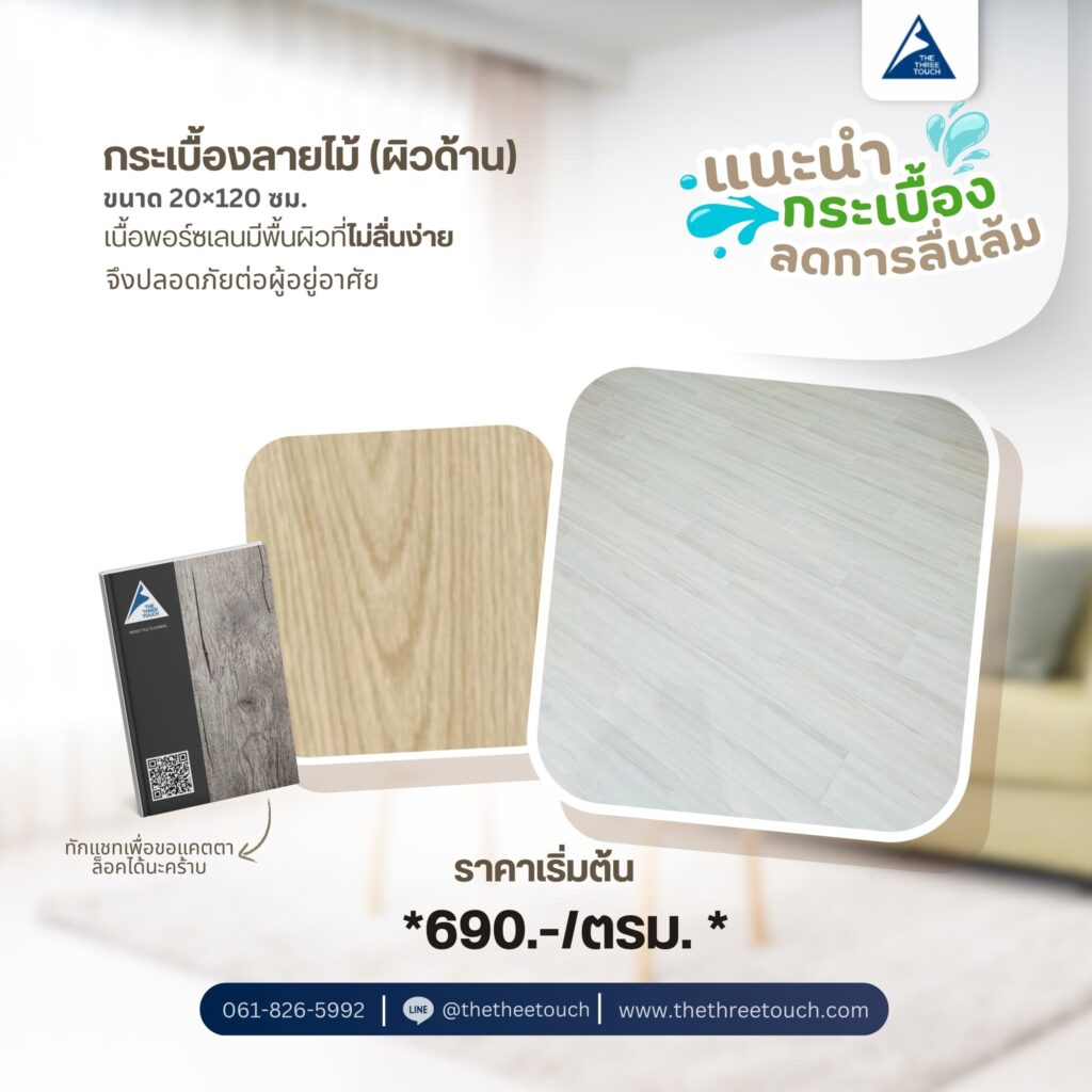ขอแนะนำ 💡 กระเบื้องพอร์ซเลนลายไม้ ผิวด้าน