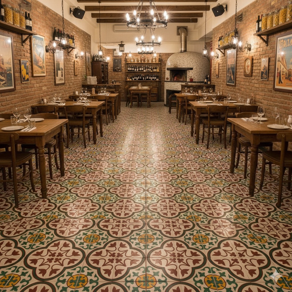 Prompt ตัวอย่าง: “ทำภาพร้านอาหารอิตาลี ที่ปูด้วยกระเบื้องลายโบราณ ให้ที ทำให้ลายกระเบื้องแนวตรงสมมาตรให้ด้วย” (อยากเปลี่ยนเป็นห้องนั่งเล่น คาเฟ่ หรือสปา ก็เปลี่ยนคำว่า “ร้านอาหารอิตาลี” ได้เลย!)
